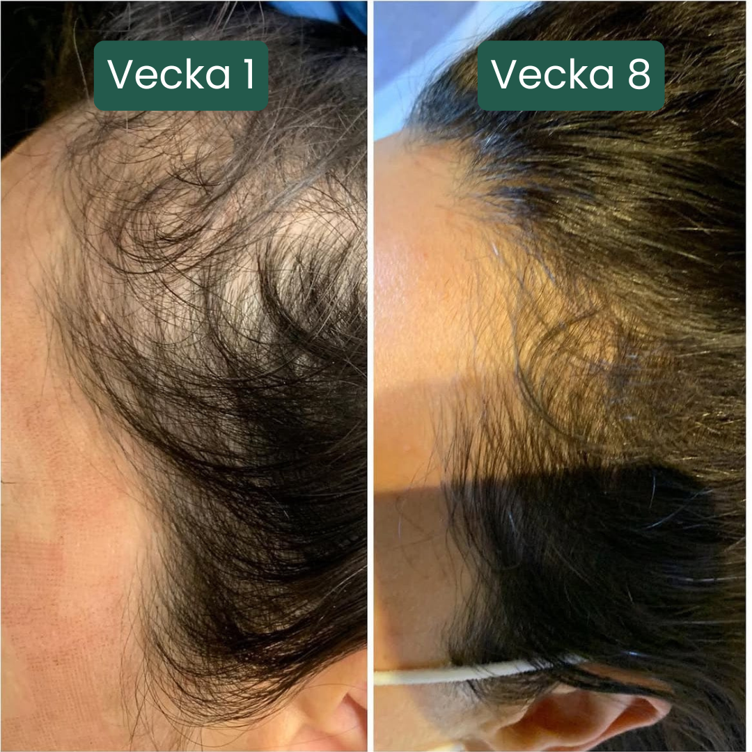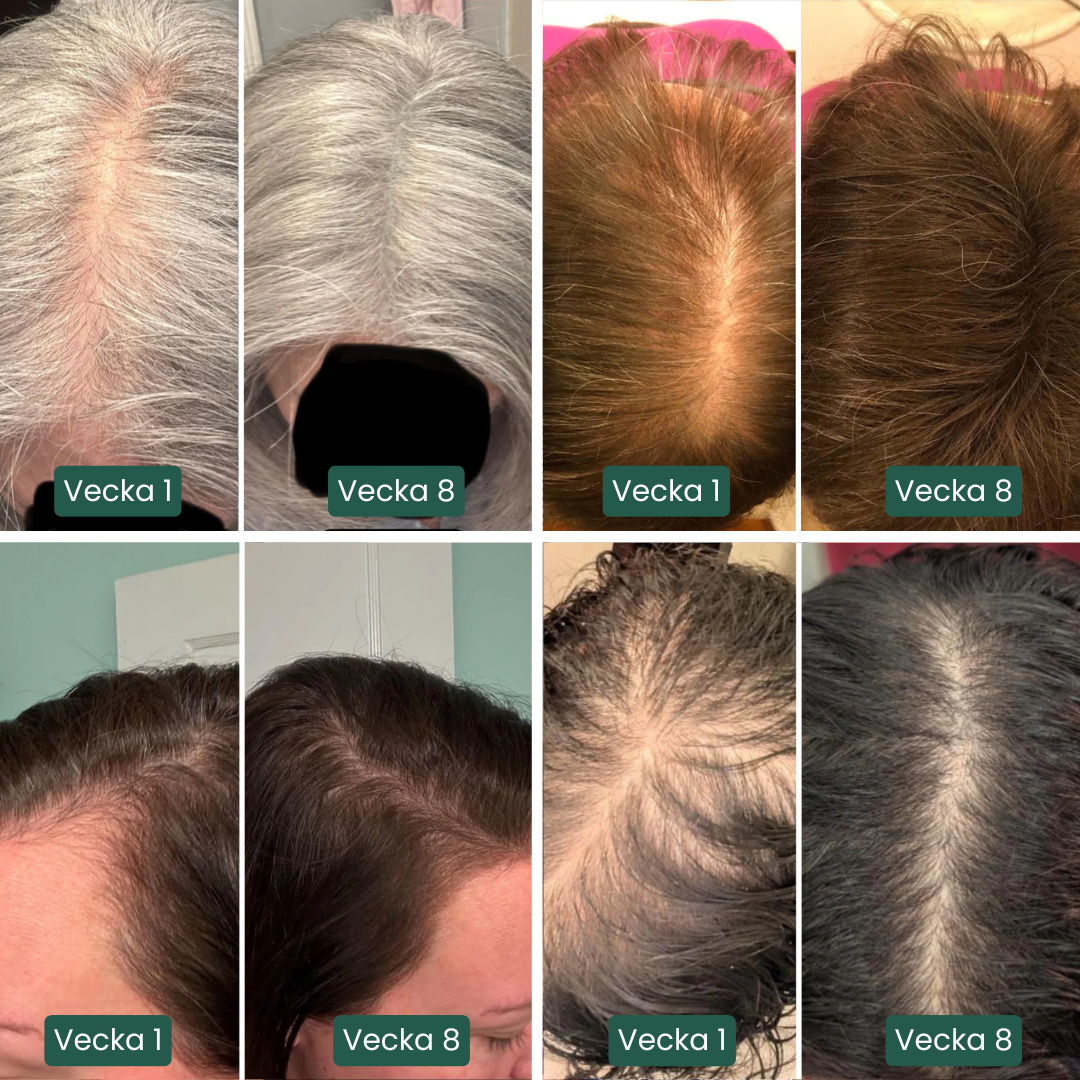 De flesta upplever en lugnare hårbotten och mindre “vardagstapp” efter 4–6 veckor. Ett fylligare helhetsintryck syns ofta efter 8–12 veckor. Resultatet varierar från person till person.